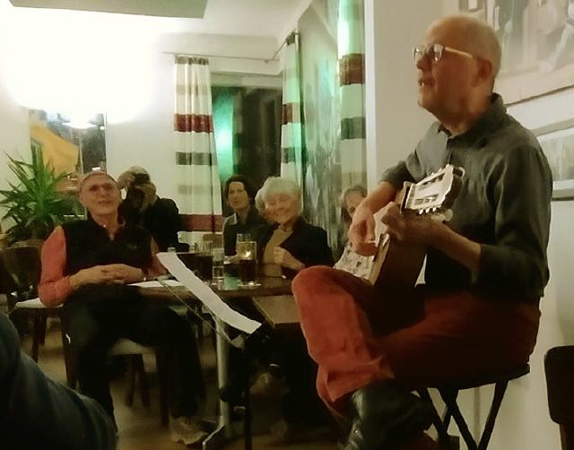 Am 21. März um 19 Uhr begrüßte der Moderator im Café FilmBühne auf ungewöhnliche Weise. Man nahm es ihm nicht wirklich ab, dass im Vorfeld etwas schiefgelaufen war und er nun mit Zweithocker und Zweitgitarre, aber ohne Noten antrat, um sich selbst musikalisch einzubringen. Rudi Fichtl ist schließlich bekannt für seine perfekt konzipierte Satire. Und perfekt erschien auch der Abend, trotz der unglücklichen Fügung – oder vielleicht gerade deswegen … mehr hier