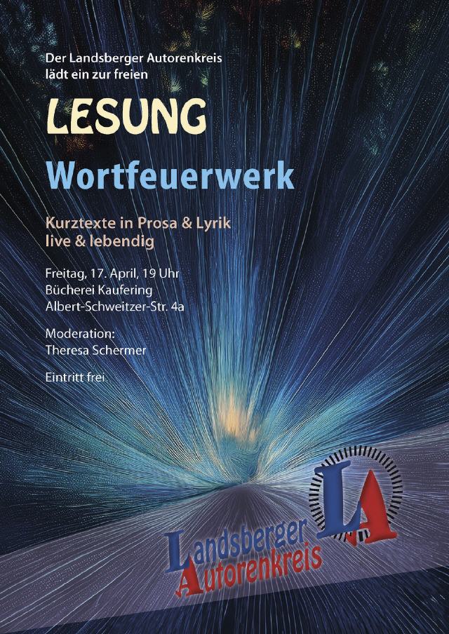 Es mag wohl keine Autorin und keinen Autor geben, der nicht stolz und glücklich ist, wenn er ein eigenes neues Buch in den Händen hält. Die Lesung mit den Buchvorstellungen von Autoren des Landsberger Autorenkreises ist daher immer ein ganz besonderer Termin im Jahr. Entsprechend schick hatte sich Moderator Boris Schneider angezogen, als er am Abend des 24. Oktobers Schreibende und Gäste im Café FilmBühne begrüßte... mehr hier